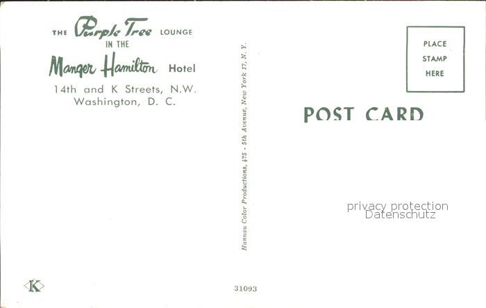 71942412 Washington DC Hotel Manger Hamilton Purple Tree Lounge postalisch nicht gelaufen Erhaltung siehe scans KatCode: 14140090000000