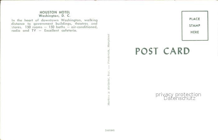 72316495 Washington DC Houston Hotel postalisch nicht gelaufen Erhaltung siehe scans KatCode: 14140090000000