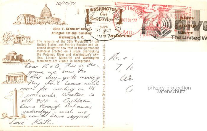 73130584 old postcard Washington DC John F Kennedy Grave Arlington postalisch gelaufen Erhaltung siehe scans [KathaD81] KatCode: 14140090000000