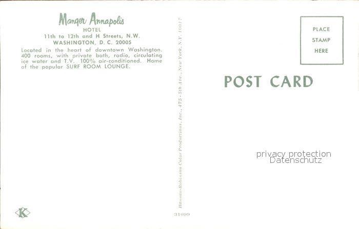 11700971 Washington DC Manger Annapolis Hotel postalisch nicht gelaufen Erhaltung siehe scans KatCode: 14140090000000