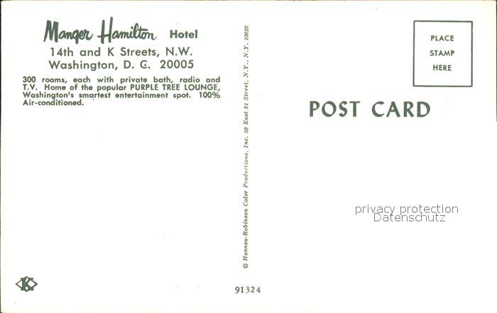 71942415 Washington DC Manger Hamilton Hotel postalisch nicht gelaufen Erhaltung siehe scans KatCode: 14140090000000