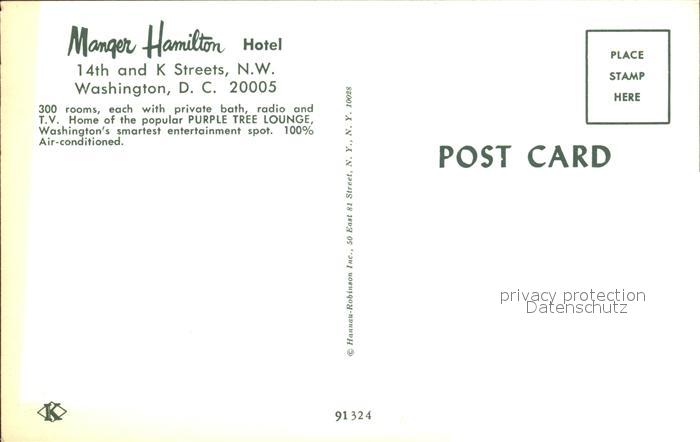 72368943 Washington DC Manger Hamilton Hotel postalisch nicht gelaufen Erhaltung siehe scans KatCode: 14140090000000