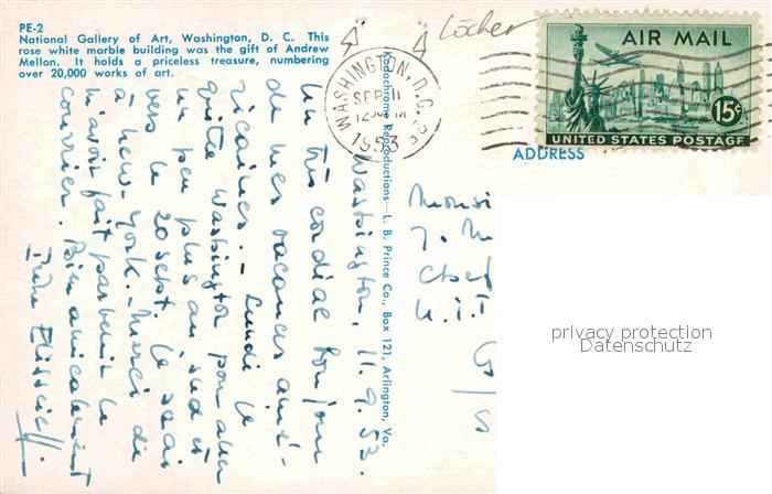 72739134 old postcard Washington DC National Gallery of Art postalisch gelaufen Erhaltung siehe scans [WerneD78] KatCode: 14140090000000