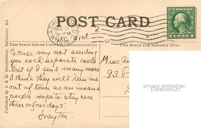 73316552 old postcard Washington DC New Union Station postalisch gelaufen Erhaltung siehe scans [KathaD81] KatCode: 14140090000000