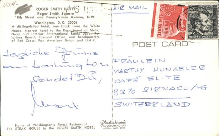 11491620 old postcard Washington DC Roger Smith Hotel Roger Smith Square postalisch gelaufen Erhaltung siehe scans KatCode: 14140090000000