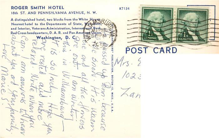 73869606 old postcard Washington DC Roger Smith Hotel postalisch gelaufen Erhaltung siehe scans [FriedD77] KatCode: 14140090000000