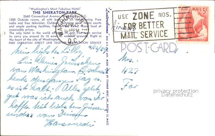 11693209 old postcard Washington DC Sheraton Park postalisch gelaufen Erhaltung siehe scans KatCode: 14140090000000