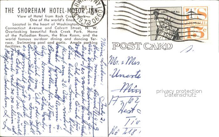 72366580 old postcard Washington DC Shoreham Hotel-Motor postalisch gelaufen Erhaltung siehe scans KatCode: 14140090000000