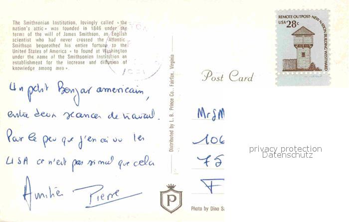 72767034 old postcard Washington DC Smithsonian Institution postalisch gelaufen Erhaltung siehe scans [LiesaD40] KatCode: 14140090000000