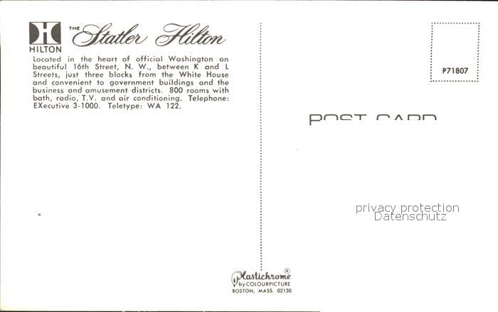 11688603 Washington DC Statler Hilton Hotel postalisch nicht gelaufen Erhaltung siehe scans KatCode: 14140090000000