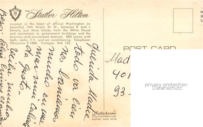 73130840 Washington DC Statler Hilton Hotel postalisch nicht gelaufen Erhaltung siehe scans [FriedD77] KatCode: 14140090000000