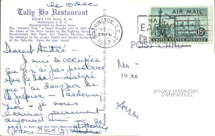 71970554 old postcard Washington DC Tally Ho Restaurant postalisch gelaufen Erhaltung siehe scans KatCode: 14140090000000