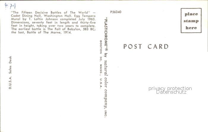 71964722 Washington DC The Fifteen Decisive Battles of the World Cadet Dining Hall postalisch nicht gelaufen Erhaltung siehe scans KatCode: 14140090000000