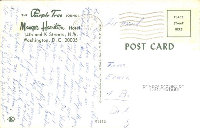 72167576 old postcard Washington DC The Purple Tree Lounge Manger Hamilton Hotel postalisch gelaufen Erhaltung siehe scans KatCode: 14140090000000
