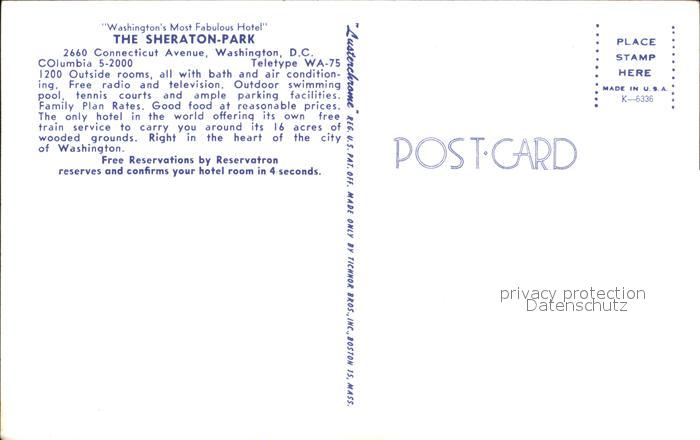 72486904 Washington DC The Sheraton Park Air view postalisch nicht gelaufen Erhaltung siehe scans KatCode: 14140090000000