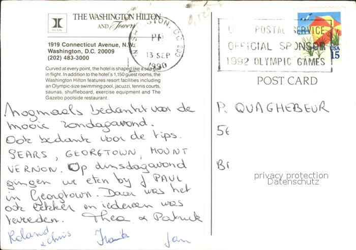 71847866 old postcard Washington DC The Washington Hilton postalisch gelaufen Erhaltung siehe scans KatCode: 14140090000000