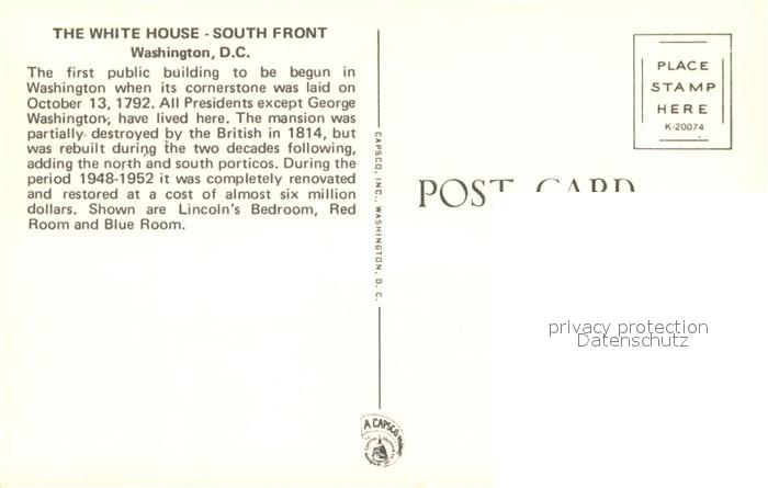73713775 Washington DC The White House Lincolns Bedroom Red Room Blue Room postalisch nicht gelaufen Erhaltung siehe scans [FriedD77] KatCode: 14140090000000
