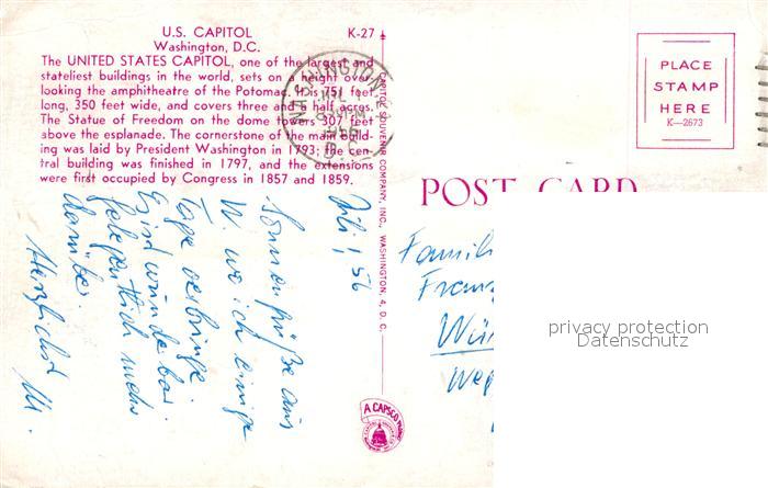 72948598 old postcard Washington DC U.S. Capitol postalisch gelaufen Erhaltung siehe scans [NatalD47] KatCode: 14140090000000