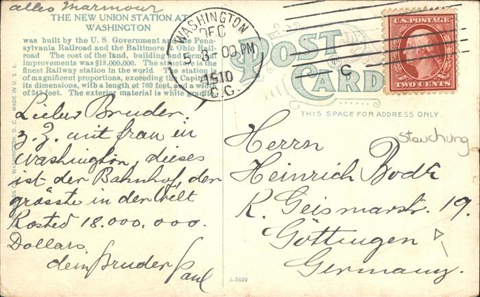 11112224 old postcard Washington DC Union Station postalisch gelaufen KatCode: 14140090000000