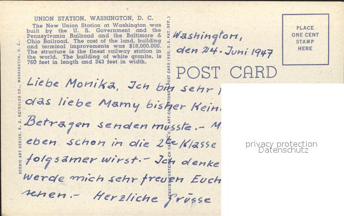 11693889 Washington DC Union Station and Columbus Memorial Fountain Flag postalisch nicht gelaufen Erhaltung siehe scans KatCode: 14140090000000