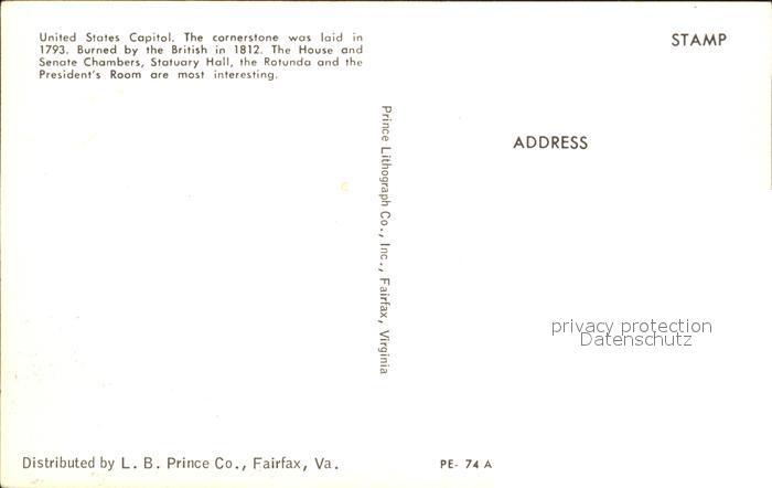 72312207 Washington DC United States Capitol postalisch nicht gelaufen Erhaltung siehe scans KatCode: 14140090000000
