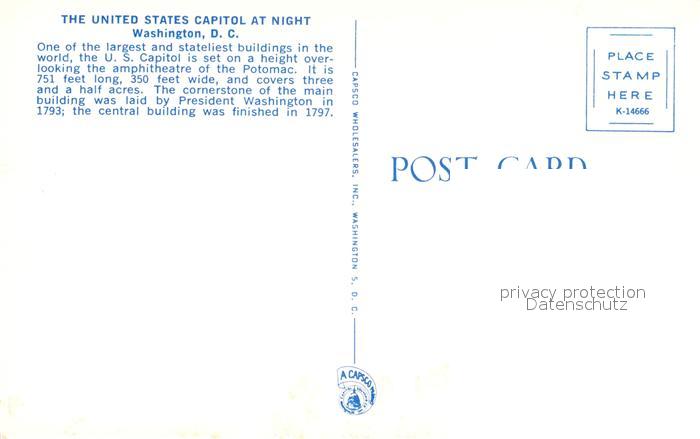 73051244 Washington DC United States Capitol Nacht postalisch nicht gelaufen Erhaltung siehe scans [KathaD81] KatCode: 14140090000000