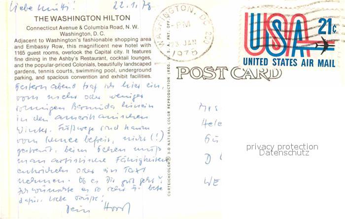 12869871 old postcard Washington DC Washington Hilton postalisch gelaufen Erhaltung siehe scans [PaolaD17] KatCode: 14140090000000