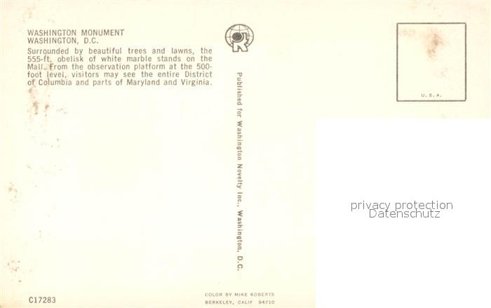 73061592 Washington DC Washington Monument postalisch nicht gelaufen Erhaltung siehe scans [WerneD78] KatCode: 14140090000000