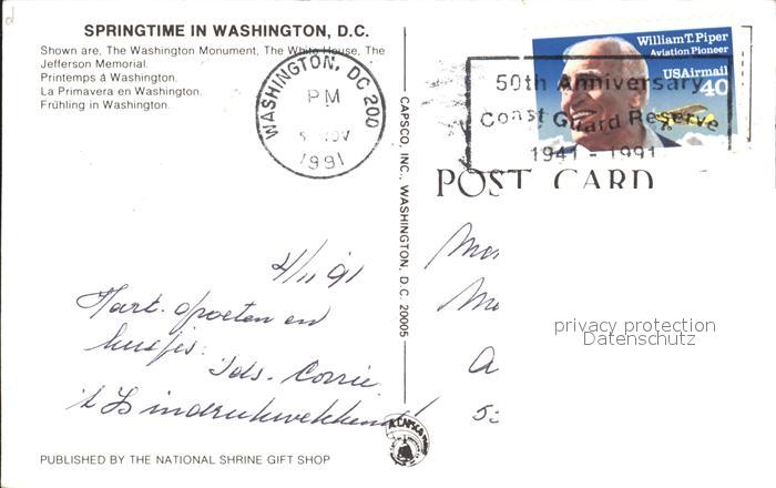 72306987 old postcard Washington DC Washington Monument White House postalisch gelaufen Erhaltung siehe scans KatCode: 14140090000000