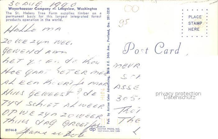 72272000 Washington DC Weyerhouser Company Longview postalisch nicht gelaufen Erhaltung siehe scans KatCode: 14140090000000