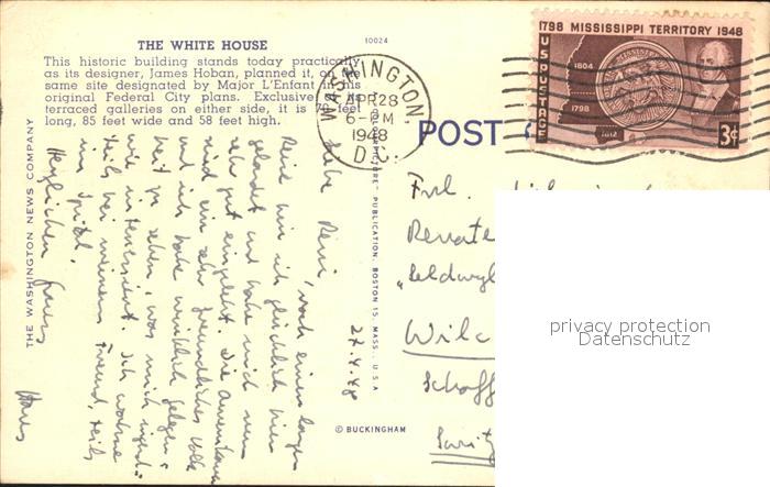 11689067 old postcard Washington DC White House postalisch gelaufen KatCode: 14140090000000
