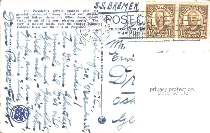 11693873 old postcard Washington DC White House Presidents Garden postalisch gelaufen Erhaltung siehe scans KatCode: 14140090000000