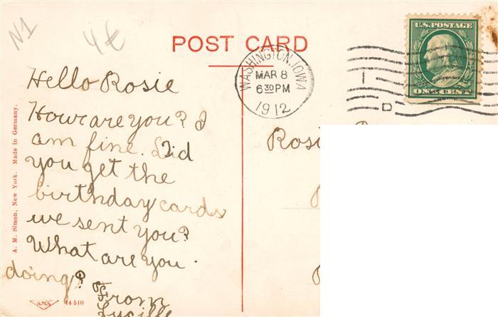 73877156 old postcard Washington Iowa St James School postalisch gelaufen Erhaltung siehe scans [FriedD77] KatCode: 14140170000000