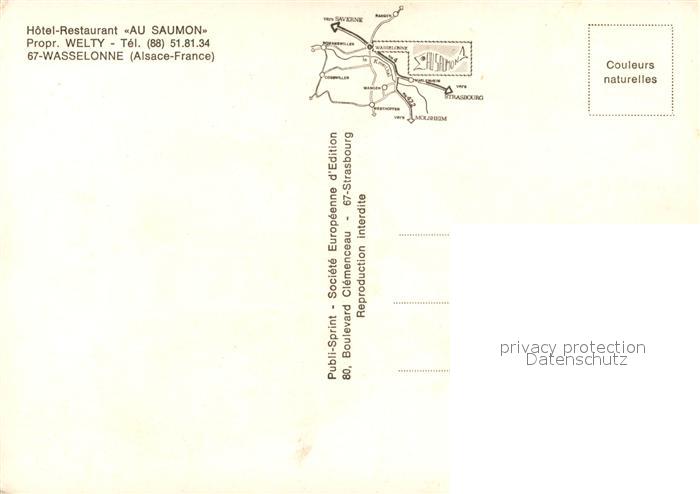 13526013 Wasselonne Bas Rhin Hotel Restaurant Au Saumon postalisch nicht gelaufen Erhaltung siehe scans [WerneD78] KatCode: 11170067367520