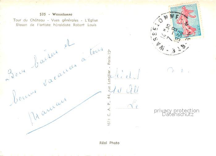 13617363 Wasselonne Bas Rhin Tour du Chateau Vues generales Eglise Blason de l’artiste heraldiste Robert Louis postalisch gelaufen Erhaltung siehe scans [WerneD78] carte postale Wern Katcode 11170067367520