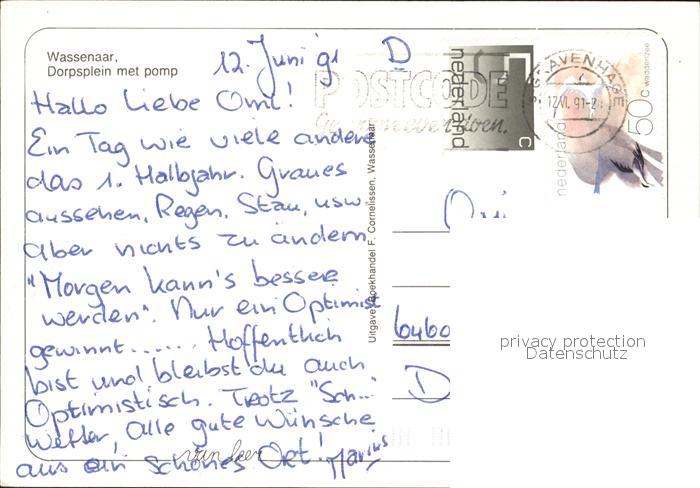 old postcard Wassenaar Dorpsplein met pomp Dorfplatz Brunnen postalisch gelaufen Erhaltung siehe scans