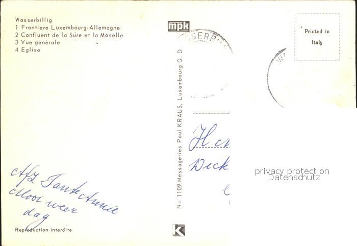 alte Postkarte Wasserbillig Eglise Confluent Sure Moselle postalisch gelaufen Erhaltung siehe scans