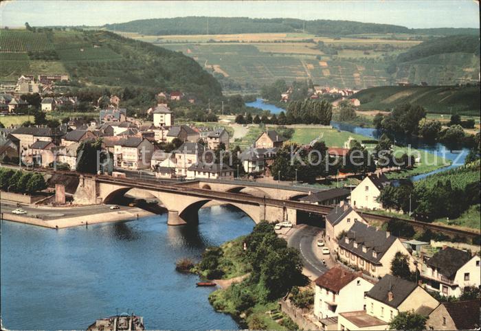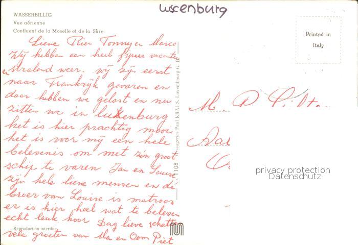 alte Postkarte Wasserbillig Fliegeraufnahme Confluent Moselle Sure postalisch gelaufen Erhaltung siehe scans
