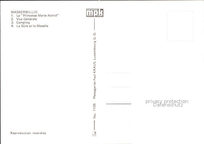 Wasserbillig Le Princesse Marie Astrid Vue generale Camping La Sure et la Moselle postalisch nicht gelaufen Erhaltung siehe scans