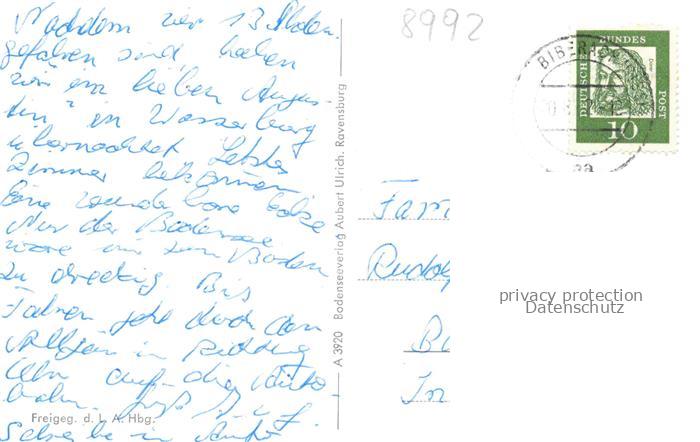 74121950 Wasserburg am Bodensee Bayern Halbinsel postalisch gelaufen Fliegeraufnahme Erhaltung siehe scans [FriedD77] Fliegeraufnahme alte Postkarte Frie Katcode 11110009776128