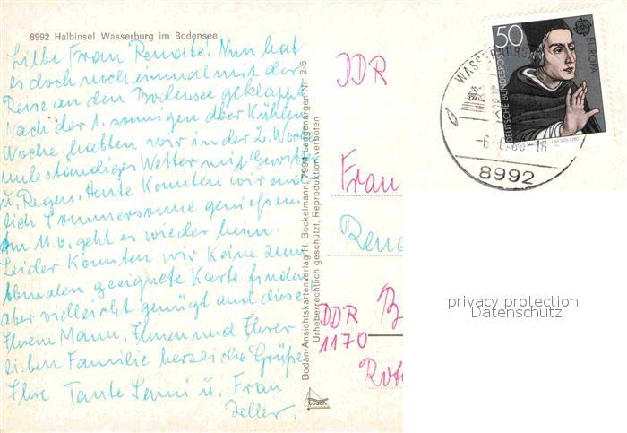 72911977 alte Postkarte Wasserburg Bodensee postalisch gelaufen Erhaltung siehe scans [NatalD47] KatCode: 11110009776128