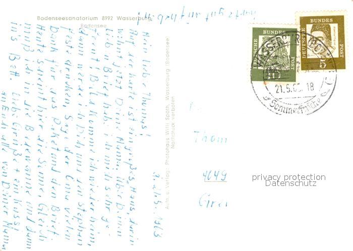 73124464 alte Postkarte Wasserburg Bodensee Bodensee Sanatorium postalisch gelaufen Erhaltung siehe scans [KathaD81] KatCode: 11110009776128