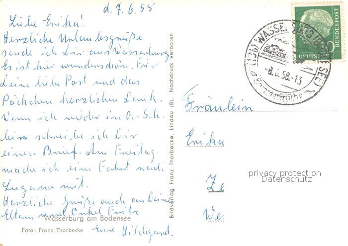 73647386 alte Postkarte Wasserburg Bodensee Fliegeraufnahme postalisch gelaufen Erhaltung siehe scans [WerneD78] KatCode: 11110009776128