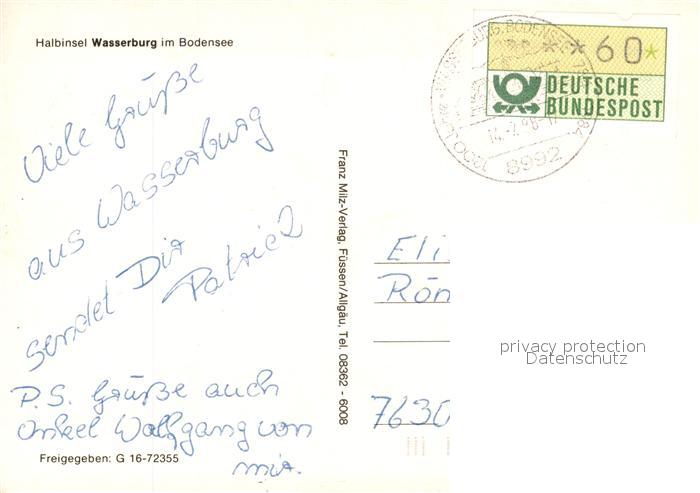 73322889 alte Postkarte Wasserburg Bodensee Fliegeraufnahme postalisch gelaufen Erhaltung siehe scans [WerneD78] KatCode: 11110009776128