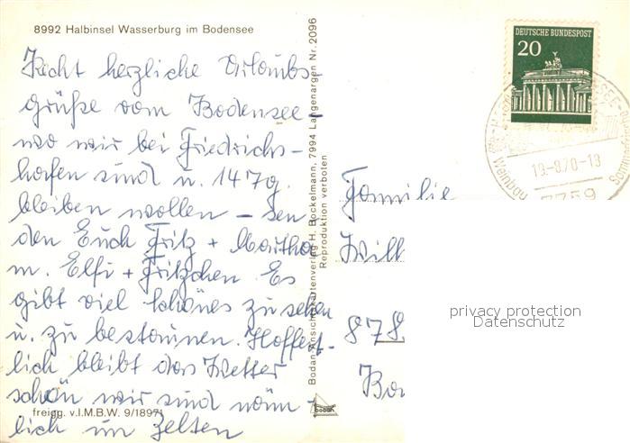 73110389 alte Postkarte Wasserburg Bodensee Fliegeraufnahme postalisch gelaufen Erhaltung siehe scans [NatalD47] KatCode: 11110009776128