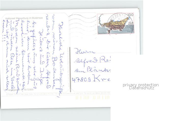 72921885 alte Postkarte Wasserburg Bodensee Fliegeraufnahme postalisch gelaufen Erhaltung siehe scans [NatalD47] KatCode: 11110009776128