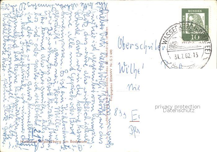 72468097 alte Postkarte Wasserburg Bodensee Fliegeraufnahme postalisch gelaufen Erhaltung siehe scans KatCode: 11110009776128