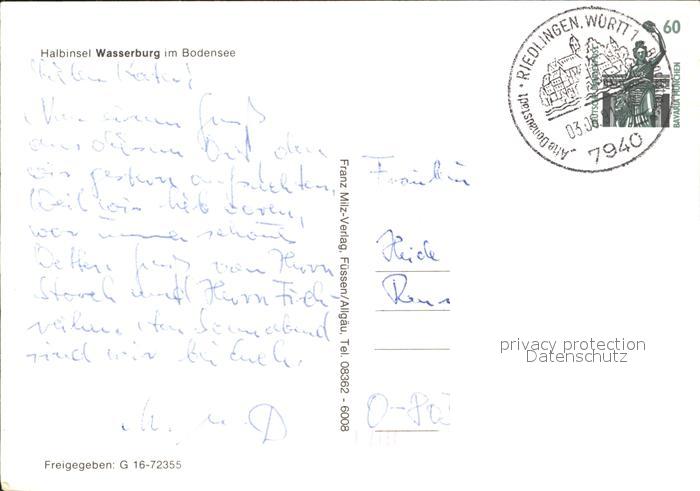 72369809 alte Postkarte Wasserburg Bodensee Fliegeraufnahme postalisch gelaufen Erhaltung siehe scans KatCode: 11110009776128