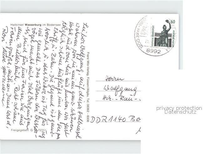 72038456 alte Postkarte Wasserburg Bodensee Fliegeraufnahme postalisch gelaufen Erhaltung siehe scans KatCode: 11110009776128
