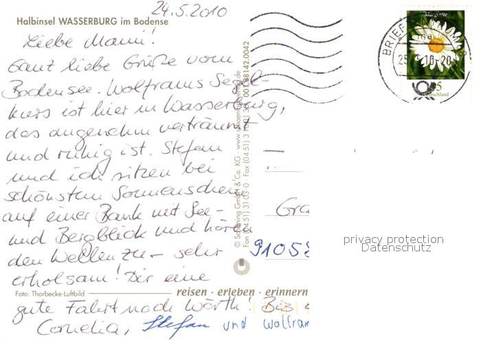 73266318 alte Postkarte Wasserburg Bodensee Fliegeraufnahme Halbinsel postalisch gelaufen Erhaltung siehe scans [LiesaD40] KatCode: 11110009776128